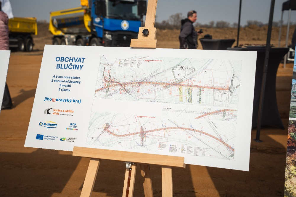 „Stavba obchvatu Blučiny je naše historicky největší krajská investice a v letošním roce prostavíme asi 260 miliónu korun, včetně DPH. Musím zdůraznit, že bez získané dotace z EU a našeho úvěru na tuto stavbu, by realizace nebyla možná,“ uvedl první náměstek Jihomoravského kraje pro dopravu a sport Jiří Crha.